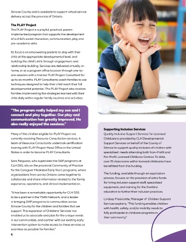 training with PLAY Project Head Office in the United Simcoe to support quality inclusion of children with