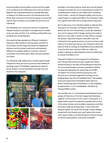 home, Passport can be accessed to provide care and not essential equipment for swimming, and CLHF’s