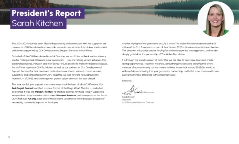 the staff that represent CLH Foundation, as well as our partners at CLH Developmental member of our community has the means to thrive. As we look toward 2025/26, we do so
